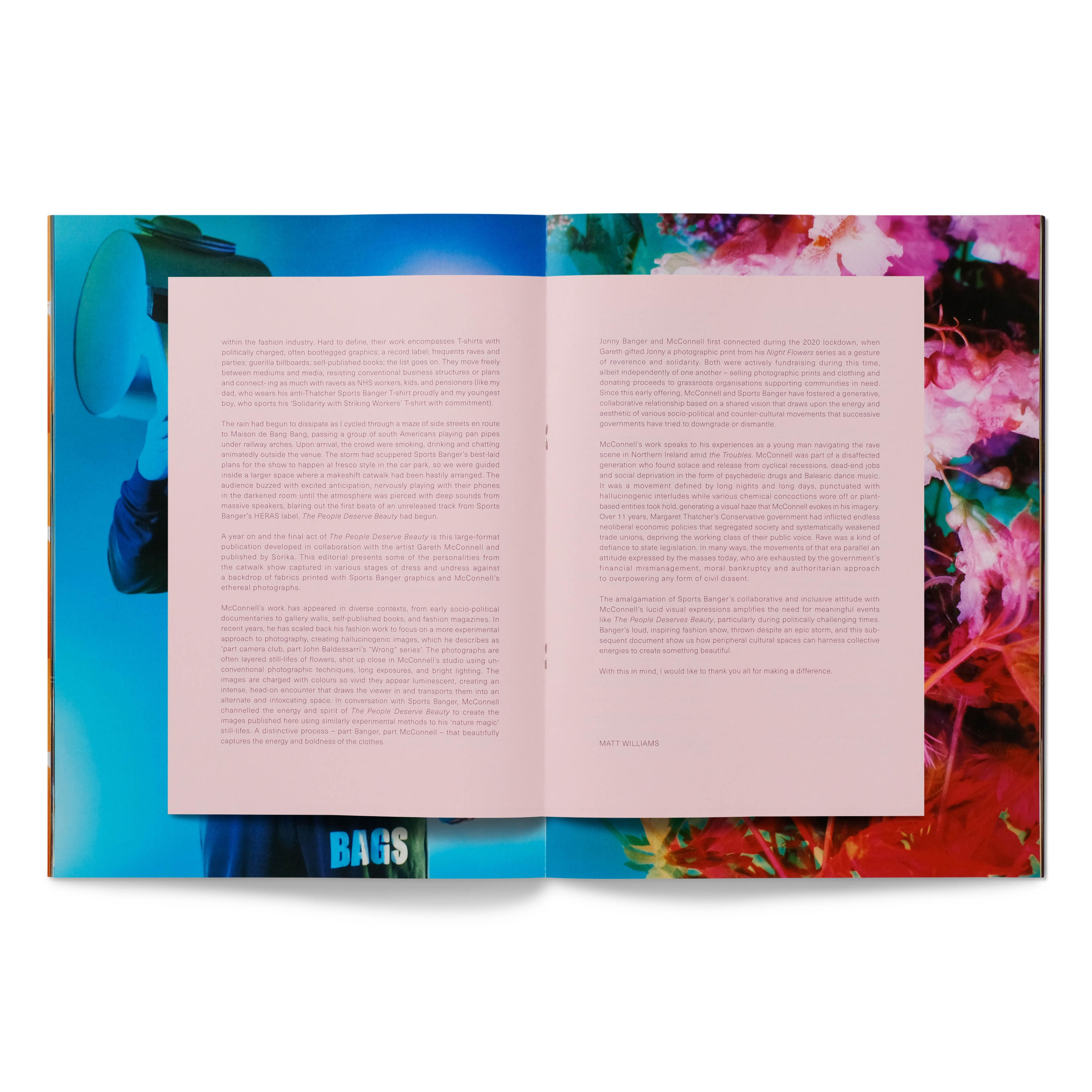 A large-format publication from Sports Banger and Gareth McConnell, documenting Sports Banger’s runway collection The People Deserve Beauty and featuring portraits of the individuals who graced the catwalk.